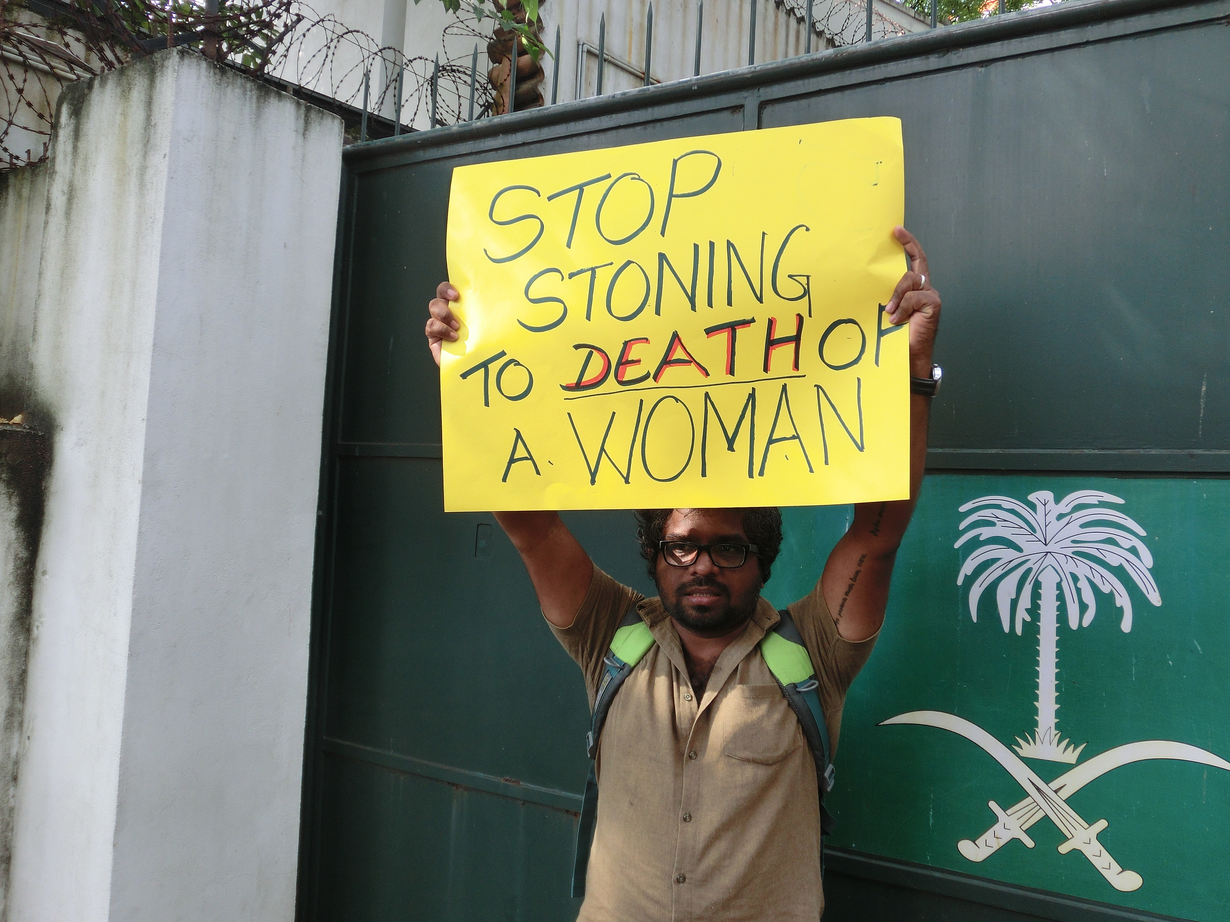 ශි්ර ලාංකික සහ සේවක කාන්තාවක් ගල් ගසා මරා දැමීමට සවුදි අරාබි ආණ්ඩුව ගෙන තිබෙන තීරණයට විරෝධය දැක්වීම ස`දහා සංවිධාන ගණනාවක් එක්ව පැවැති උද්ඝෝෂණය....