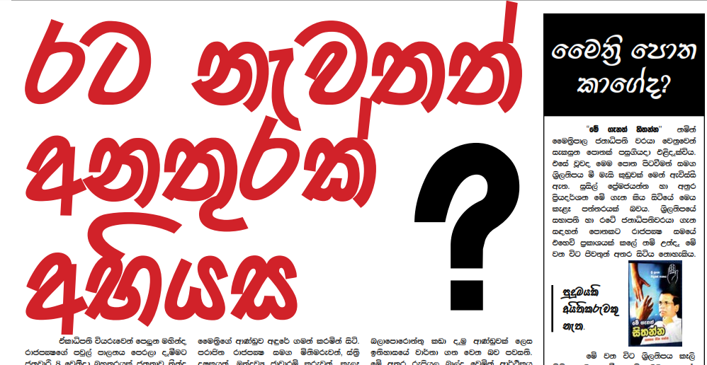 රට තීරණාත්මක මංසන්ධියක් හරහා ගමන් ගනිමින් සිටින බව ඉතා පැහැදිලිය. මේ වන විට ධනපති පංතිය කණ්ඩායම් කීපයකට බෙදී ඇත. අන්තවාදී සිංහල ජාතිවාදය කර පින්නාගත් මහින්ද රාජපක්ෂ පිළ ඉන් එකකි. නව ලිබරල් න්යාය පත්...