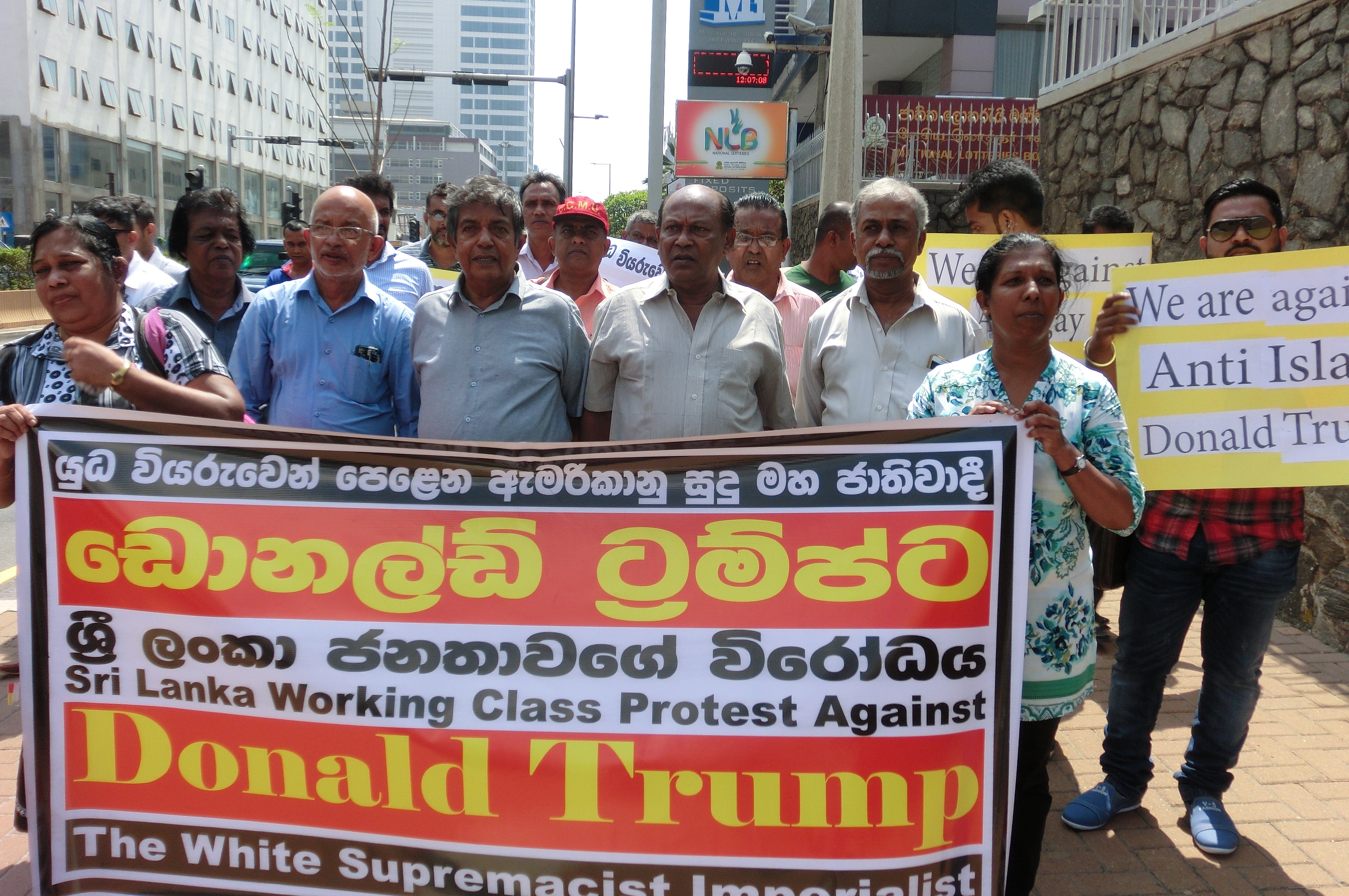 v ඩොනල්ඩ් ටර්ම්ප් ඇමරිකානු ජනාධිපතිධූරයේ වැඩ භාරගන්නා දිනයවූ ජනවාරි 20 වෙනි දින ඊට විරෝධය දැක්වීම සඳහා ලාංකේය වාම හා පරගතිශීලී ජනතාවගේ විරෝධය දැක්වීමේ වියාපාරයක් කොල්ලුපිටිය ඇමරිකානු තානාපති කාර්යාලය ...