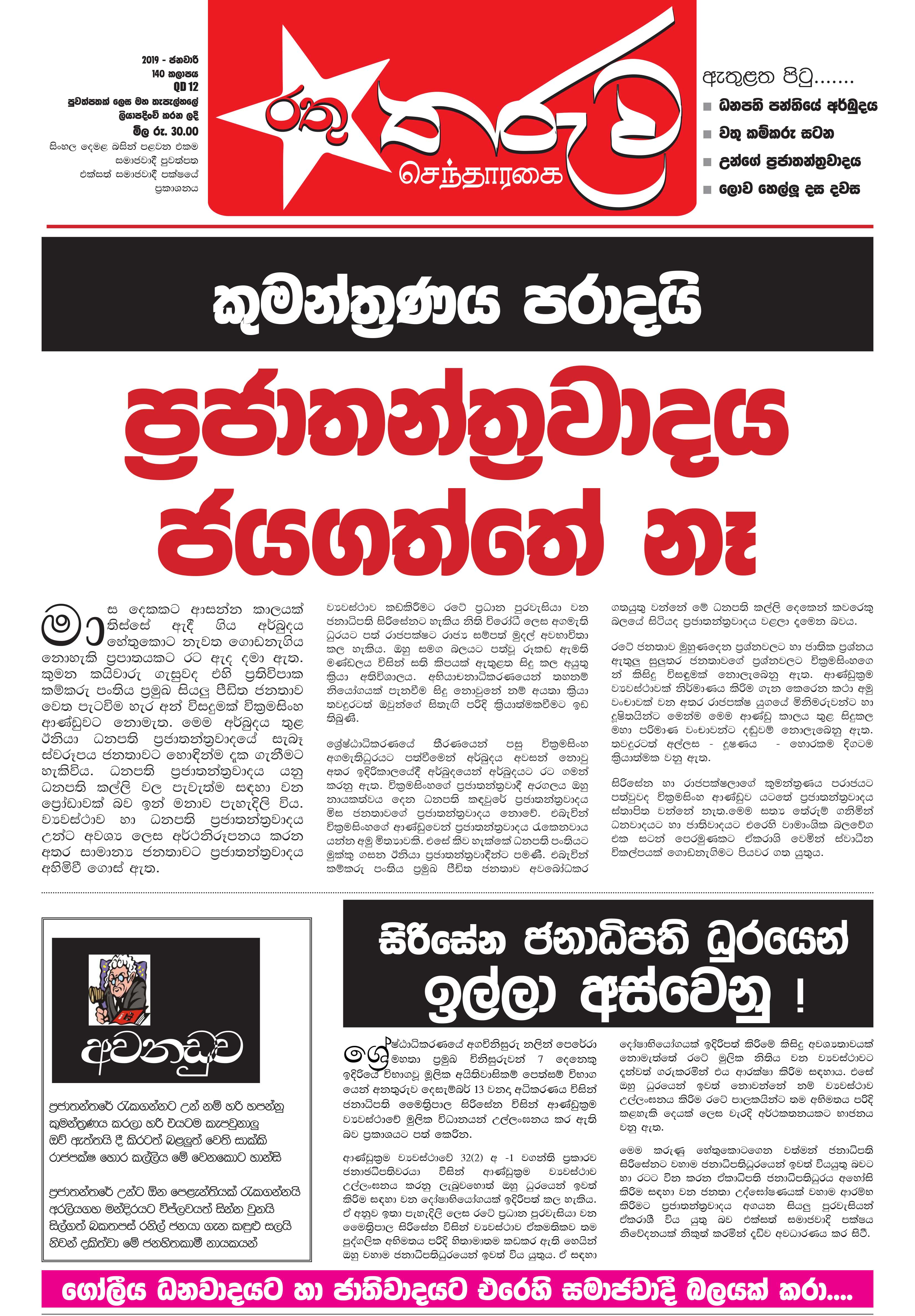 ධනපති පංතියේ අර්බුදයට තාවකාලික විරාමයක් 2018 ඔක්තෝබර් මස 26 වෙනි දින ජනාධිපති සිරිසේන විසින් විධායක ජනාධිපතිධුරයේ එ්කාධිපති බලතල හිතුවක්කර ලෙස භාවිතා කරමින් ආණ්ඩු බලය වික්රමසිංහගෙන් ඉව...