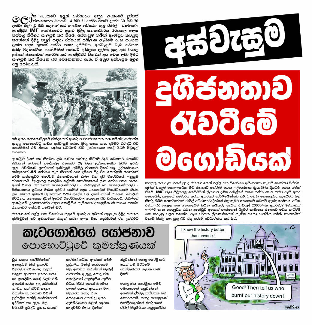 ලංකාවේ ආර්ථිකය 2023 වසරේදී තවදුරටත් කඩා වැටෙන බව ලෝක බැංකුව පසු ගිය 7වෙනි දින නිකුත් කර තිබෙන අලුත්ම වාර්තාවකින් ප්රකාශකර ඇත. ඒ අනුව 2023 වසරේ ආර්ථිකය සෘණ 4.3ක් දක්වා පහත වැටෙන බව පෙන්වාදී තිබ...